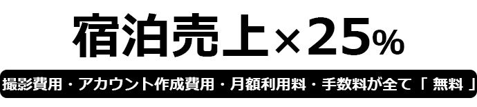 | A.お支払いは銀行振込となります。登録料、手数料などはございません。宿泊売上に対する成約課金ですので、宿泊がなかった場合は費用も発生いたしません。 |